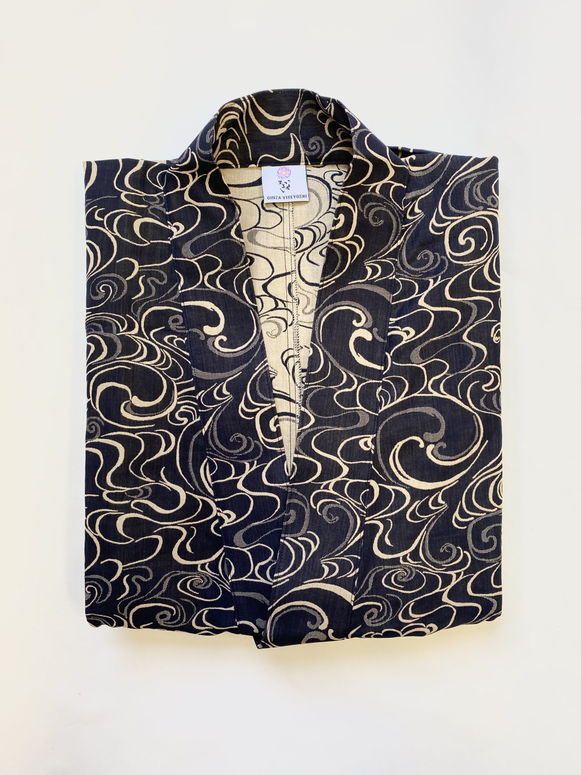 銀座きもの装 水紋柄 紺 (男性用) Lサイズ